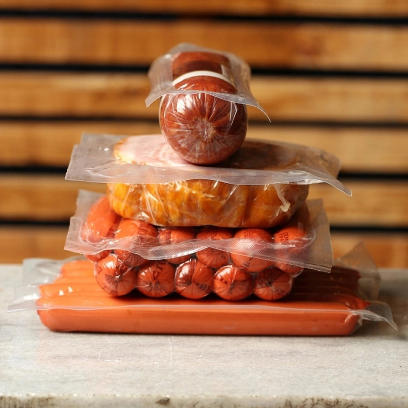 PA/EVOH/PE,PA/EVOH/PP/PE,PE/PA/EVOH/PA/PE, PE/PA/EVOH/PA/PP高阻隔拉伸膜,适用于低溫肉制品類的培根、肉棗腸、肉😗丸、獅子頭、低溫火腿、火腿切片、低溫香腸、熱狗成型🙂↔️包裝等。